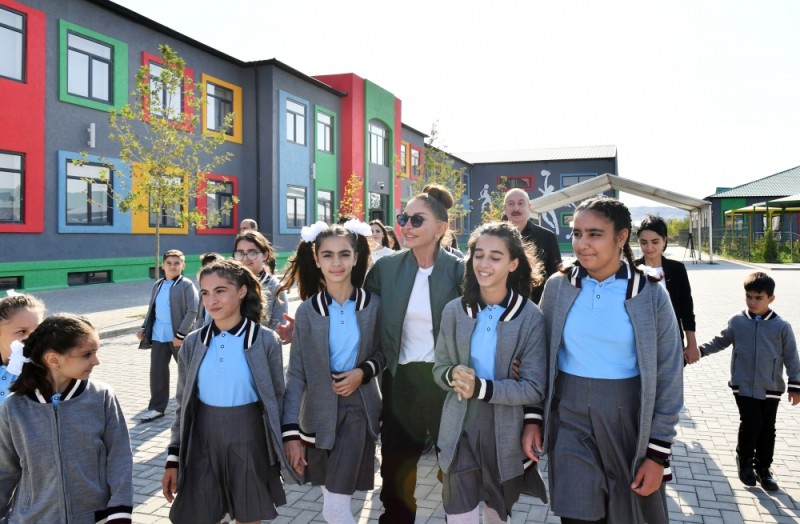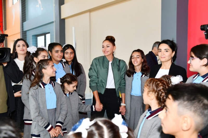 Mehriban xanım Əliyeva: Dərslərdən sonra nə edirsiniz? Burada hava yaxşıdır, yəqin bayırda oynayırsınız, görüşürsünüz. Orada - Sumqayıtdakı məktəbdə qalan dostlarınızla yəqin ki, ünsiyyətiniz var, danışırsınız. Onları da dəvət etmək olar, hərdənbir gəlsinlər, sizə dəysinlər. Burada işlər gedir. Haradadır sizin evləriniz? Buradan görünür sizin evlər?