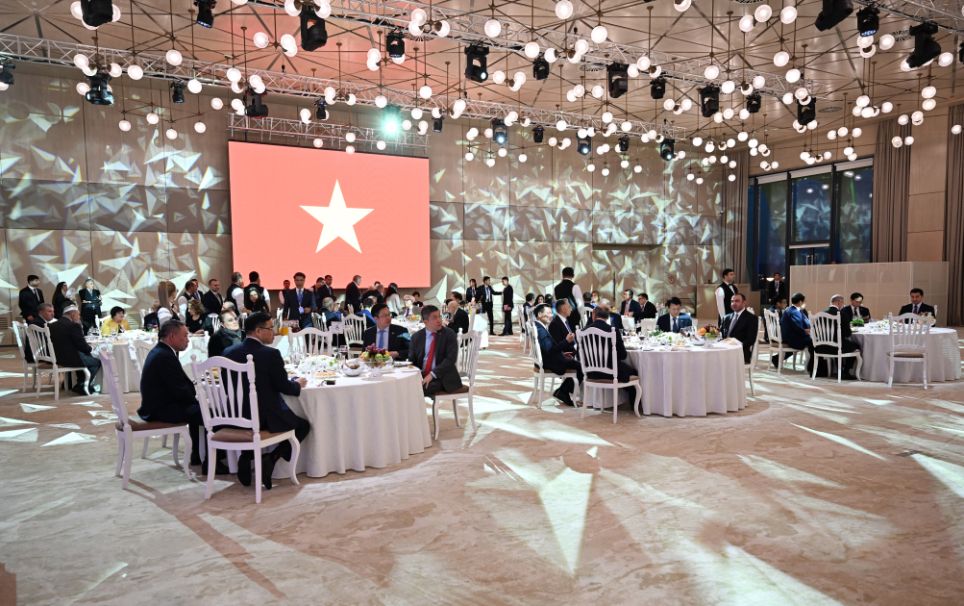 AZƏRTAC xəbər verir ki, ziyafətdə Azərbaycan və Vyetnam musiqilərindən ibarət konsert proqramı təqdim olunub.