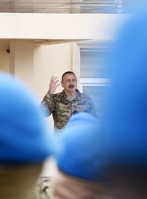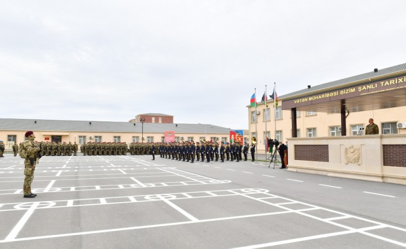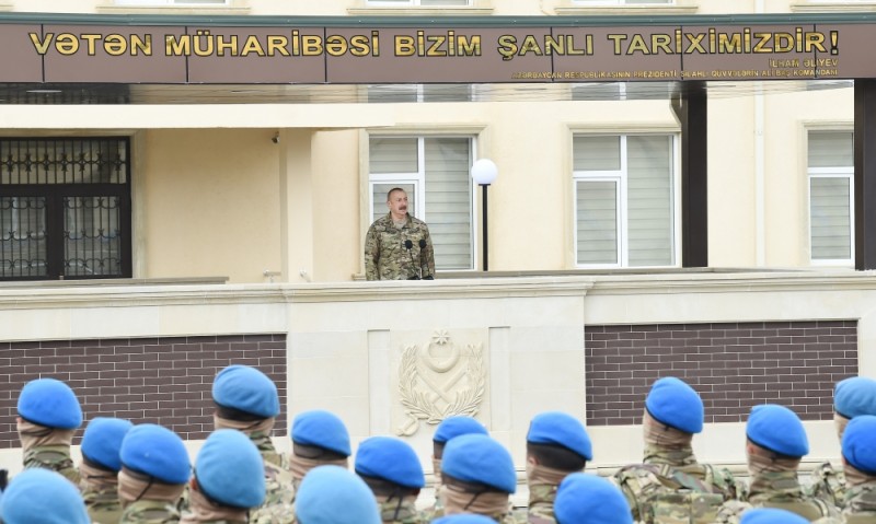 AZƏRTAC xəbər verir ki, Prezident, Müzəffər Ali Baş Komandan İlham Əliyev hərbi hissənin şəxsi heyəti qarşısında çıxış etdi.