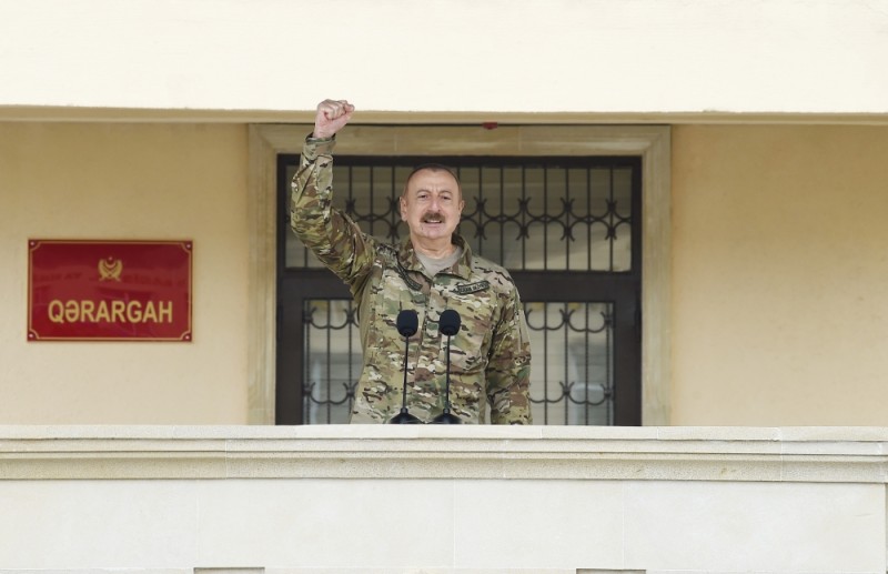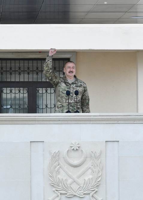 Azərbaycan Silahlı Qüvvələrinin tarixi Zəfəri bizim tariximizdə əbədi qalacaq. Biz müzəffər xalq kimi, qalib dövlət kimi bundan sonra əbədi yaşayacağıq. Bu sevinci bizə bəxş edən bizim övladlarımız, əsgər və zabitlərimiz olub. Bütün Silahlı Qüvvələr bu Qələbənin əldə olunmasında öz dəyərli töhfəsini vermişdir və cəmi 44 gün ərzində tarixi Zəfər əldə olundu, düşmən bizim qabağımızda diz çökdü və məcbur oldu öz əli ilə kapitulyasiya aktına imza atdı. Bu, tariximizin və mənim həyatımda bəlkə də ən yaddaqalan, ən sevincli, ən qürurlu anlardan biridir, bəlkə də birincisidir. Ermənistanın kapitulyasiya aktına imza atmaq mənim həyatımda ən qürurlu hadisədir.