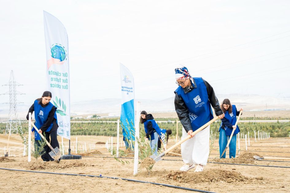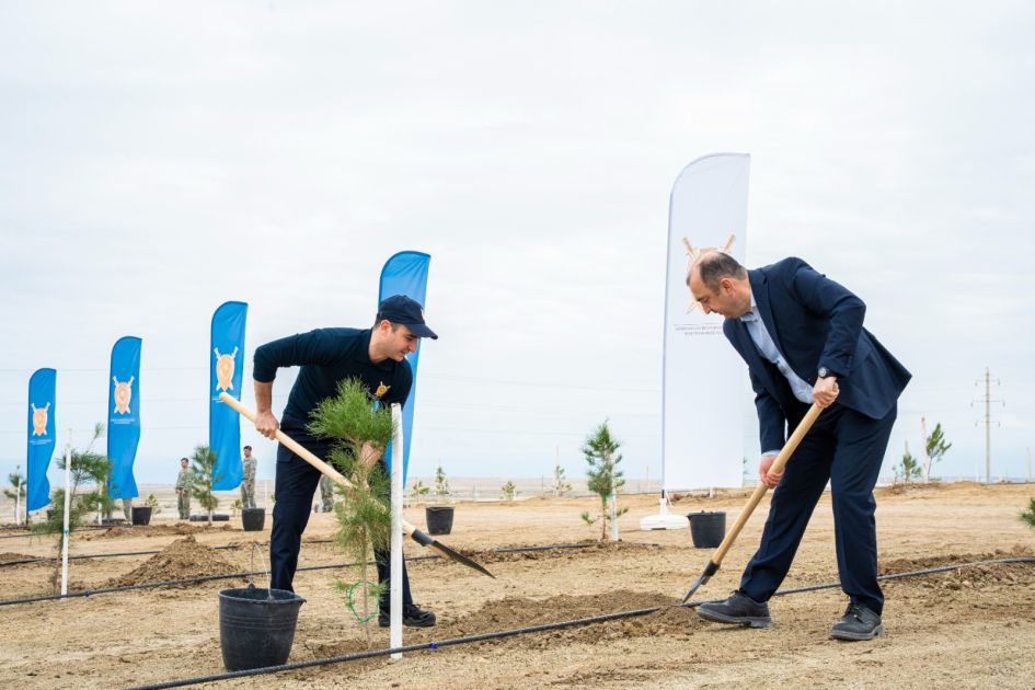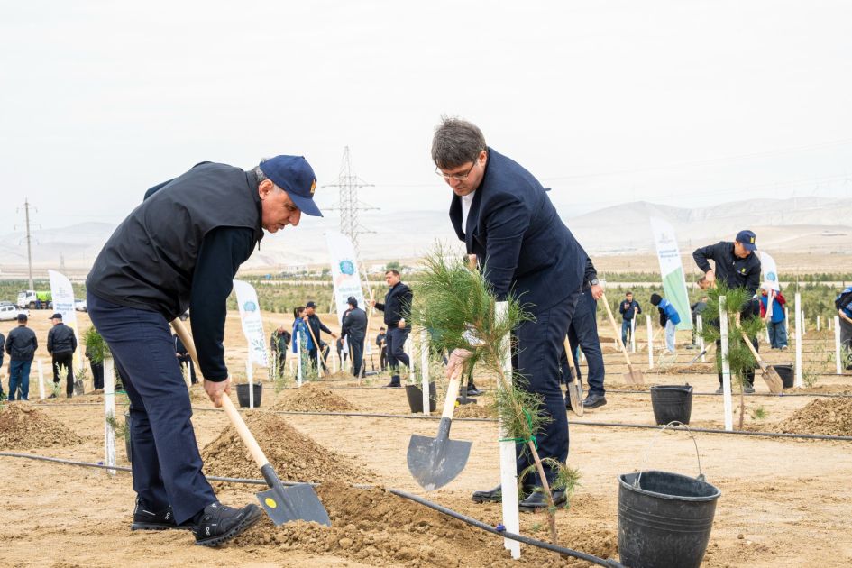 Tədbir çərçivəsində Abşeron yarımadasının torpaq-iqlim şəraitinə uyğun Eldar şamı və zeytun ağacları əkilib.