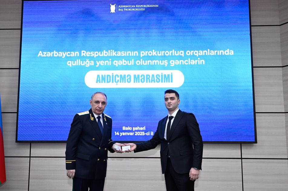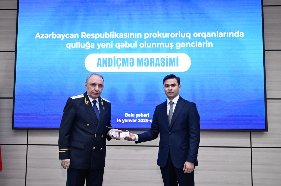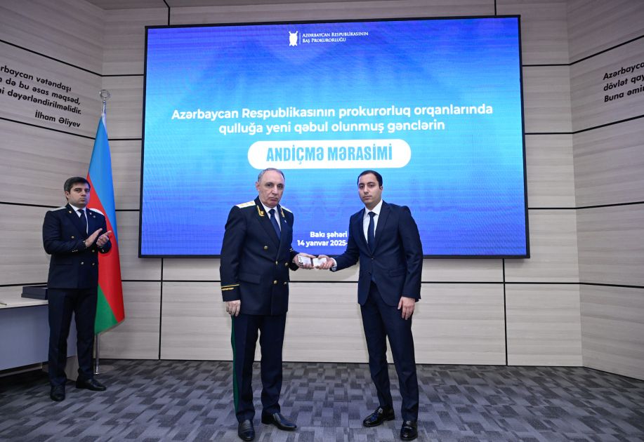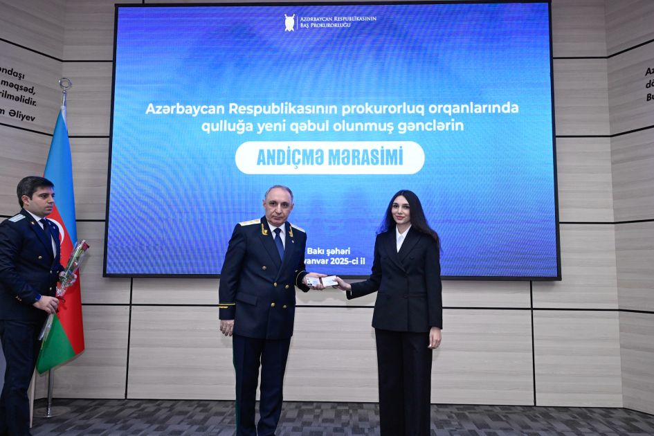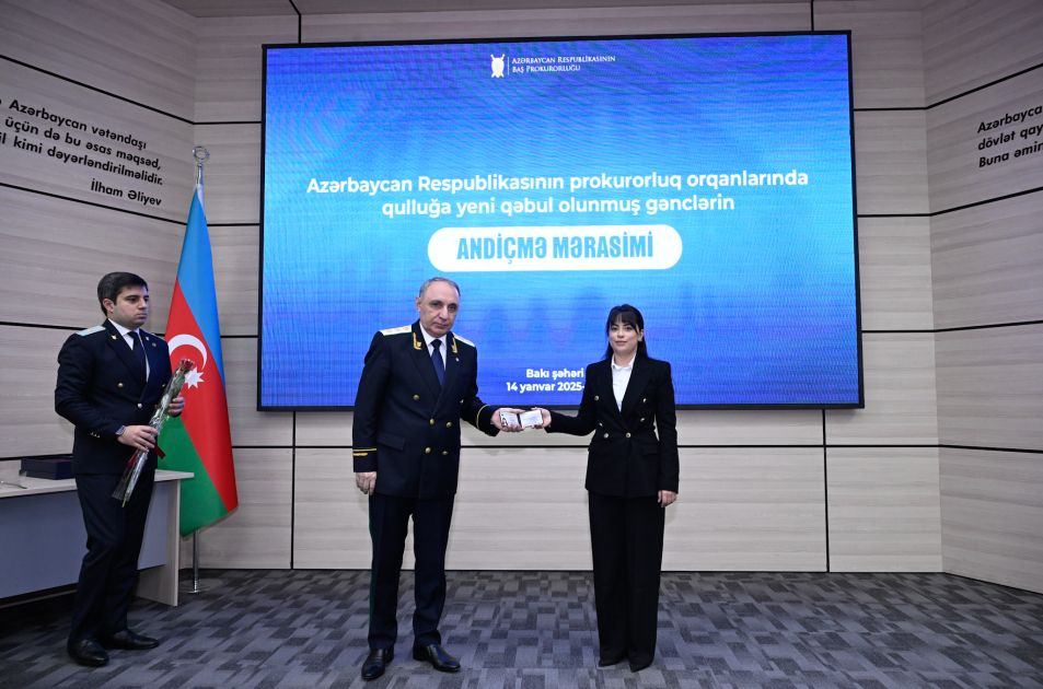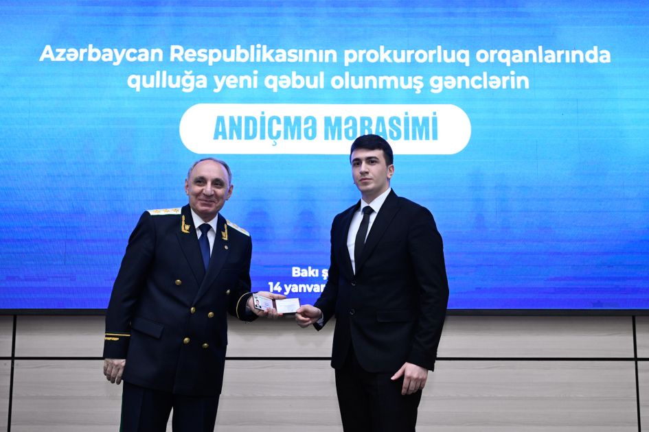 2024-cü il aprelin 15-də elan edilmiş 26-cı müsabiqə üzrə prokurorluq orqanlarında qulluğa yeni qəbul edilmiş gənc əməkdaşların cari il yanvarın 14-də Azərbaycan Respublikasının Baş Prokurorluğunda andiçmə mərasimi keçirilib.