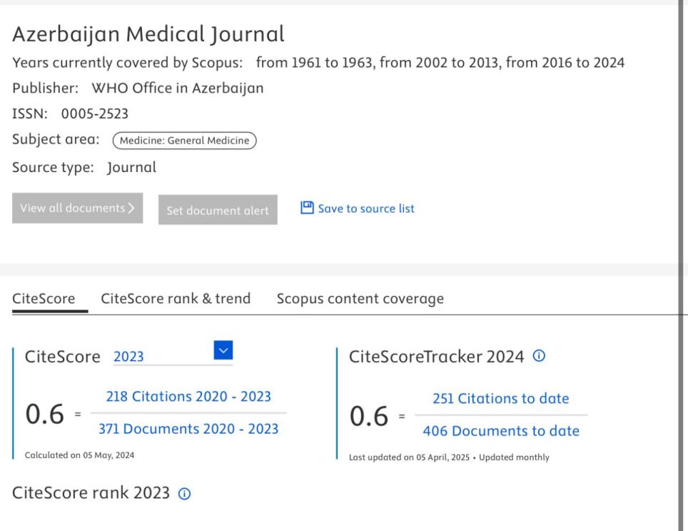 Qeyd edək ki, bu jurnal “Scopus”, “EMBASE (Elsevier)”, “Index Copernicus”, “Google Scholar” kimi nüfuzlu elmi bazalarda indeksləşdirilir və eyni zamanda Ümumdünya Səhiyyə Təşkilatının Azərbaycan nümayəndəliyinin rəsmi elmi nəşri statusuna malikdir.