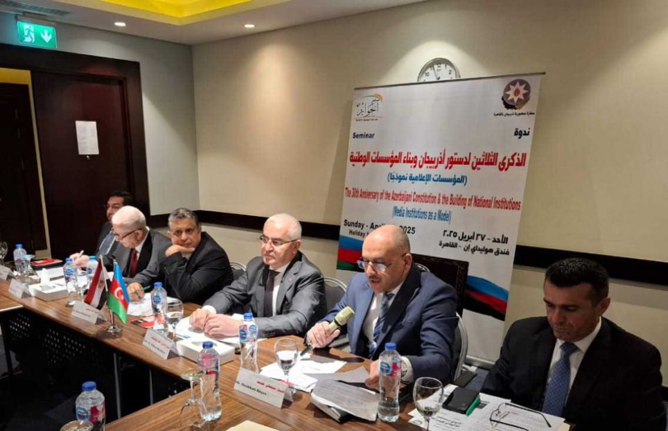 Qahirədə “Azərbaycan Konstitusiyasının qəbul edilməsinin 30 illiyi və milli institutların yaradılması (media institutları nümunəsində)” mövzusunda seminar keçirilib. Tədbir Azərbaycanın Qahirədəki səfirliyi və Misirin “Hivar” Siyasi və Media Araşdırmaları Mərkəzi tərəfindən təşkil edilib.