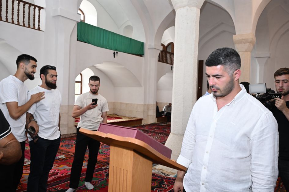 Daha sonra komanda üzvləri Ağdam Cümə məscidinə baş çəkiblər. Qurban Qurbanov və bir neçə futbolçu məsciddə namaz qılıb.
