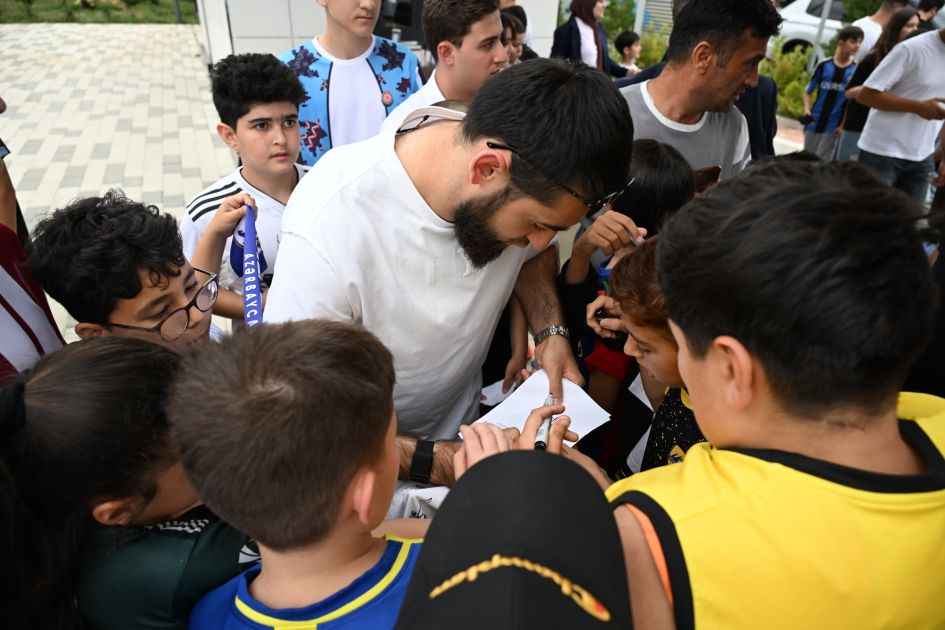Komanda burada böyük coşqu ilə qarşılanıb. Şəhər sakinləri ilə görüşdə, xüsusilə uşaqlar Q.Qurbanov və futbolçularla şəkil çəkdirmək üçün sıraya düzülüblər.