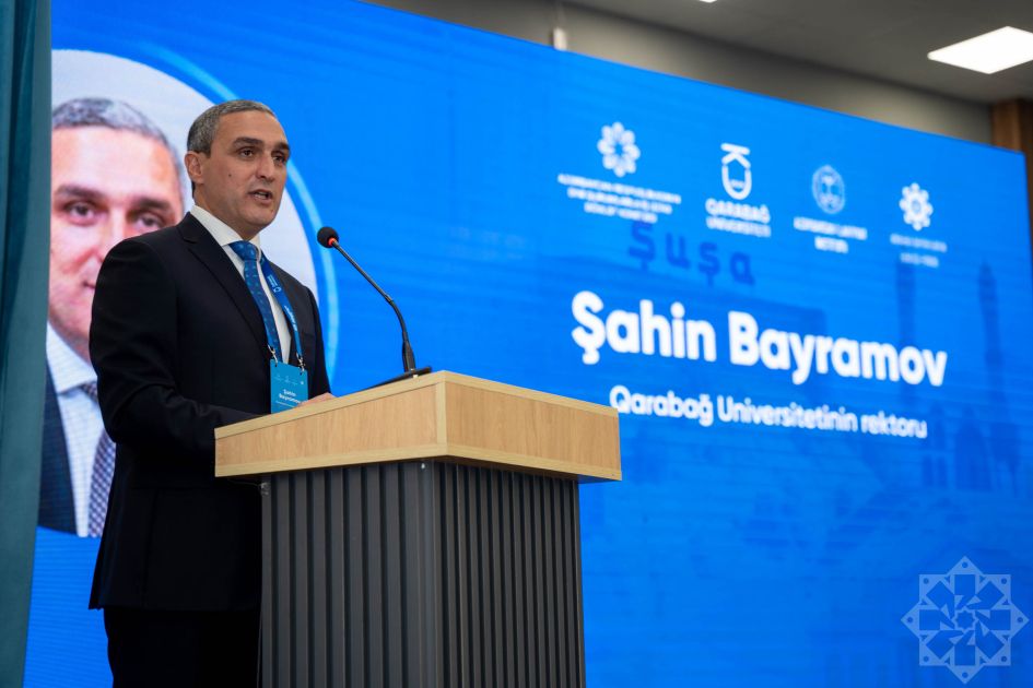 Qarabağ Universitetinin Filologiya kafedrasının müdiri, filologiya elmləri doktoru Əzizağa Nəcəfov “Qarabağın təhsil tarixi və Qarabağ Universiteti təhsilimizin yeni mərhələsi kimi” mövzusunda çıxış edib. O, Qarabağda təhsilin tarixi köklərindən, işğal dövründə itirilən mənəvi və elmi potensialdan, eyni zamanda, Qarabağ Universitetinin bu boşluğu doldurmaqda oynadığı roldan danışıb.