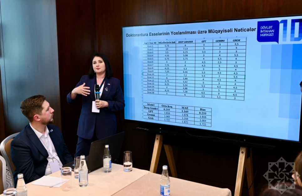 Eyni zamanda, sessiyalarda “Azərbaycan təhsilində hibrid yanaşma: süni intellekt və qayda əsaslı qiymətləndirməyə keçid”, “Elektron imtahan sistemləri: inkişaf, analitika və texnoloji transformasiya”, “İmtahanların idarə edilməsində texnologiyaların tətbiqi”, “Qəbul imtahanlarında informatika fənni” kimi mövzularla yanaşı, dövlət qulluğu sahəsini əhatə edən təqdimatlar da yer alıb.
