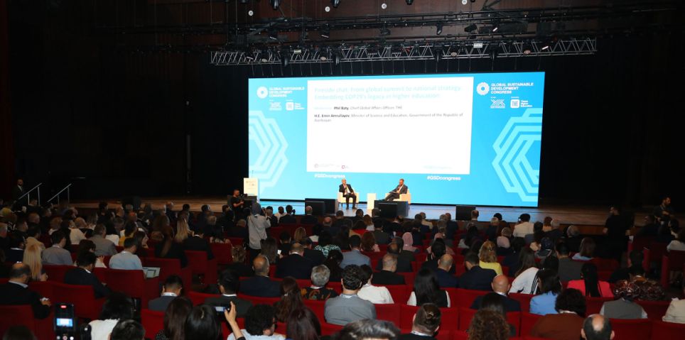 “Times Higher Education” Beynəlxalq Reytinq Agentliyinin qlobal məsələlər üzrə baş direktoru Fil Batinin moderatorluğu ilə keçirilən müzakirədə Emin Əmrullayev Azərbaycanın COP29 kimi mötəbər beynəlxalq tədbirə ev sahibliyi etməsindən sonrakı dövrdə elm və təhsil sahəsinin inkişafı üçün yaranmış imkanlar barədə sualları cavablandırıb. Eyni zamanda, ali təhsil müəssisələrimizdə dayanıqlı inkişaf üzrə görülən işlər, iqlim üzrə tədqiqatların dəstəklənməsi, yaşıl bacarıqların inkişafı, müvafiq istiqamətdə qlobal tərəfdaşlıqların qurulması və beynəlxalq görünürlüyün artırılması kimi məsələlər qeyd olunub.