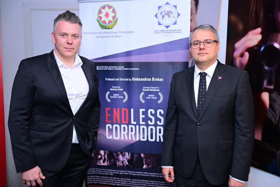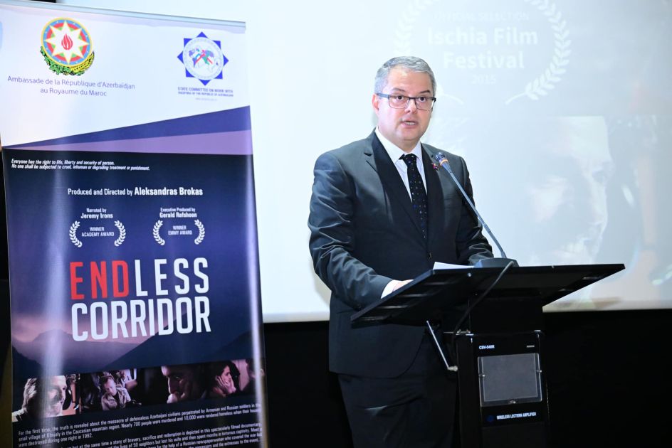 Fevralın 20-də Mərakeşin paytaxtı Rabatda Xocalı soyqırımının 33-cü ildönümü ilə əlaqədar litvalı kinorejissor Aleksandras Brokasın “Sonsuz dəhliz” (Endless corridor) filmi nümayiş etdirilib. Azərbaycan Respublikası Diasporla İş üzrə Dövlət Komitəsinin dəstək göstərdiyi filmin nümayişi Azərbaycanın Mərakeş Krallığındakı səfirliyi ilə bu ölkənin Audiovizual və kino peşəsi üzrə Ali İnstitutunun (ISMAC) birgə təşkilatçılığı ilə keçirilib.