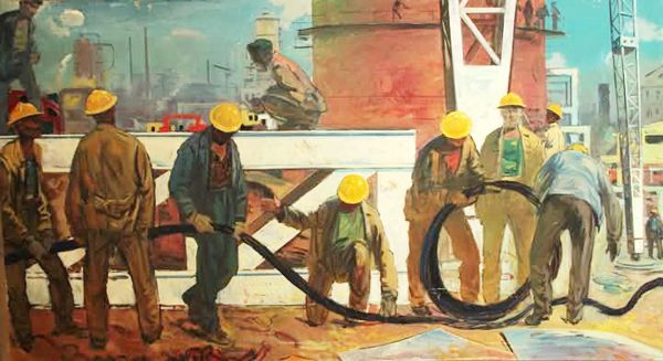 "Üzüm yığımı" əsərində kompozisiyanın mərkəzində dairəvi planda insanlar üzüm səbətlərindən üzümləri boşaltdıqları məqamda təsvir edilmişdir. Arxası tamaşaçıya sarı profildən təsvir edilmiş, əlində üzüm səbəti, qırmızı geyimli, uzunsaçlı qadının təsviri tamaşaçının diqqətini özünə cəlb edir. Rəssam bununla bir növ zəhmətkeş qadın əməyinin nümunəsini göstərməyə çalışmışdır. Yeri gəlmişkən, qeyd etmək lazımdır ki, rəssam yaradıcılığında zəhmətkeş qadın, ana obrazına yüksək həssaslıqla yanaşaraq poetik biçimdə, cəlbedici və lirik lövhələr yaratmışdır. Bu baxımdan "Sevinc", "Analıq" adlı əsərlərini qeyd etmək olar. Bu əsərlərdə rəssam ana məhəbbətini, övlad səadətini inandırıcı tərzdə, bədii-estetik baxımdan yüksək yaradıcılıqla təsvir etmişdir. Əsərlərin uğurlu kolorit həlli seyrçidə xoş duyğular oyadır.