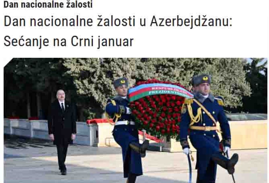 20 Yanvar faciəsinin 35-ci ildönümü ilə əlaqədar Serbiyanın “Ekspres” xəbər portalında “Azərbaycanın Milli Hüzn Günü: Qara Yanvarın xatirəsi” sərlövhəli məqalə dərc edilib.