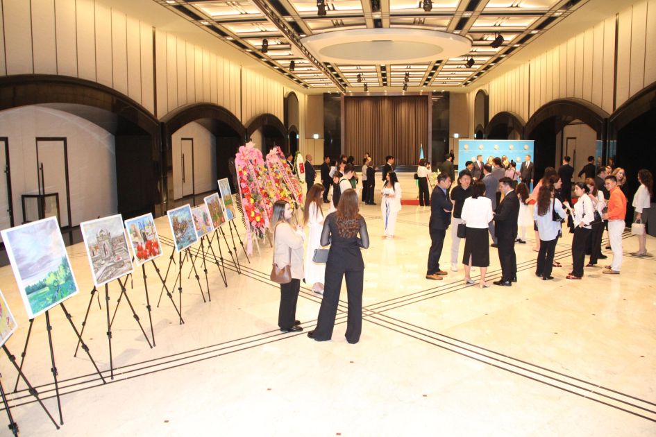 Tədbir iştirakçıları azərbaycanlı gənc rəssamların əsərlərindən ibarət sərgi ilə tanış olublar.