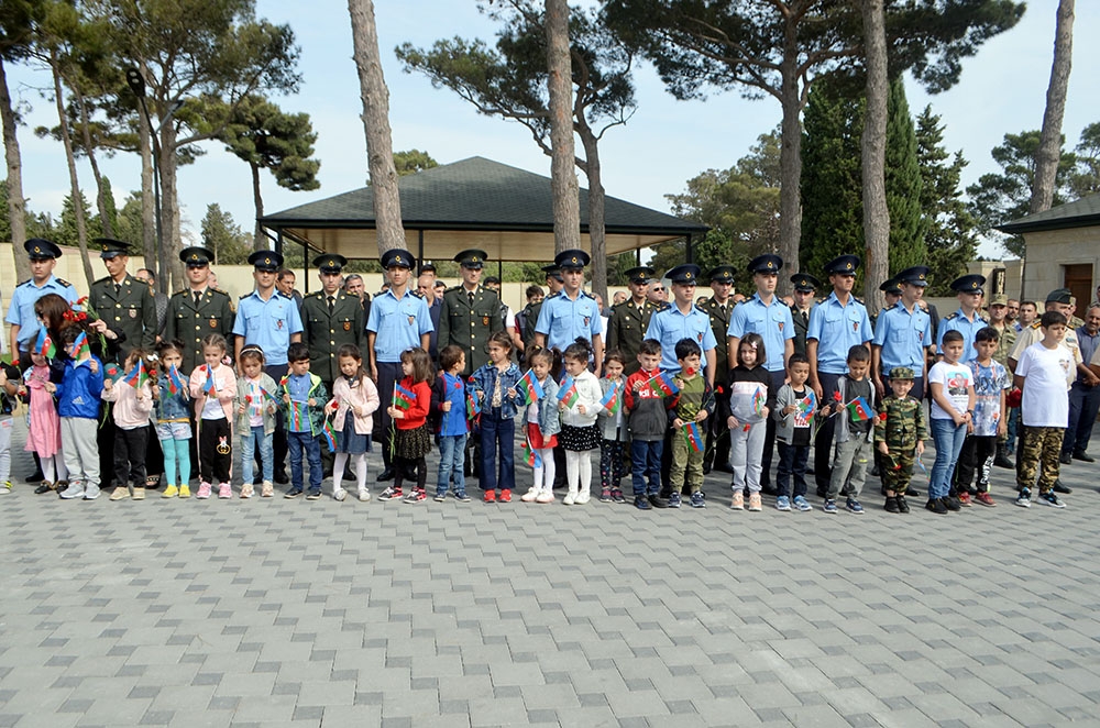 Respublikamızın ərazi bütövlüyünün qorunması və bərpası, eləcə də tarixi torpaqlarımızın işğaldan azad edilməsi uğrunda döyüşlərdə şəhid olan Vətən övladlarının xatirəsi bir dəqiqəlik sükutla yad edilib, hərbi orkestrin müşayiəti ilə Dövlət Himni ifa olunub.
