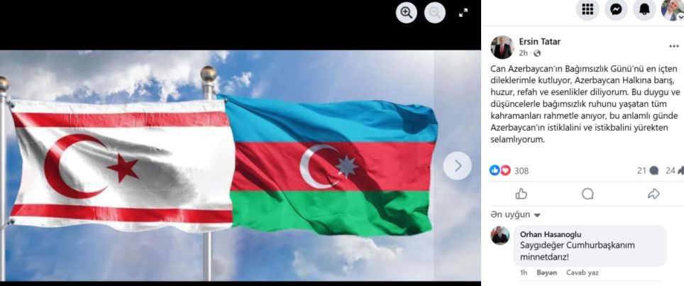 Şimali Kipr rəhbərliyi Azərbaycanın Müstəqillik Gününü təbrik edib