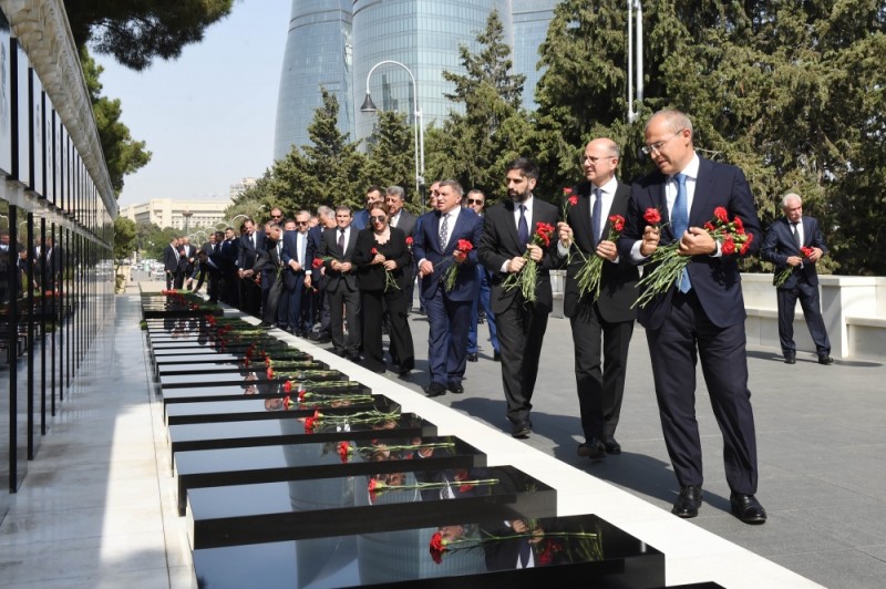 Sonra Şəhidlər xiyabanına gələn tədbir iştirakçıları ölkəmizin ərazi bütövlüyü uğrunda qəhrəmancasına canlarını fəda etmiş bütün şəhidlərimizin əziz xatirəsini dərin minnətdarlıqla anıblar, “Əbədi məşəl” abidəsinin önünə əklil qoyublar.