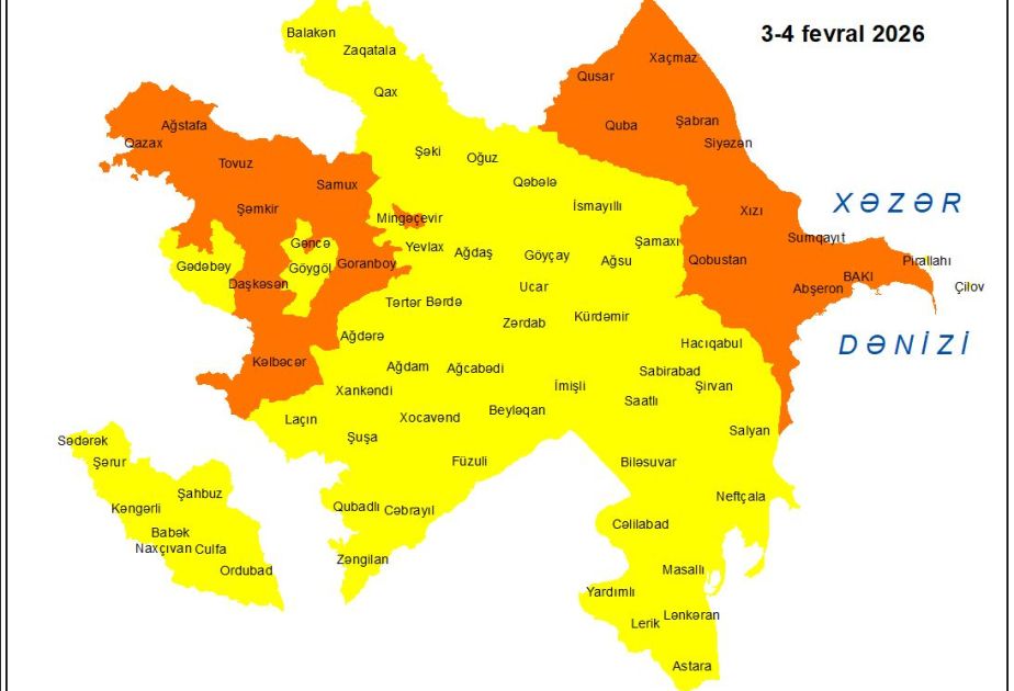 Bildirilib ki, Azərbaycanın rayonlarında isə fevralın 3-ü axşamdan 5-i səhərədək hava şəraitinin arabir yağıntılı olacağı, bəzi yerlərdə qar yağacağı proqnozlaşdırılır. Ayrı-ayrı yerlərdə yağıntıların intensivləşəcəyi ehtimalı var.