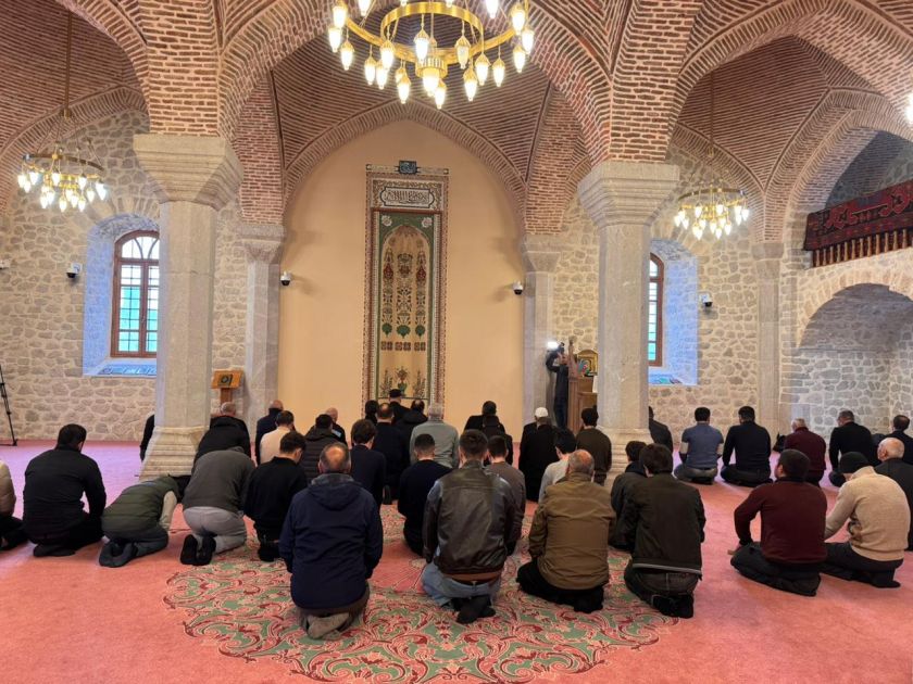 Ramazan bayramı ilə əlaqədar Şuşa şəhərindəki Yuxarı Gövhər Ağa məscidində bayram namazı qılınıb.