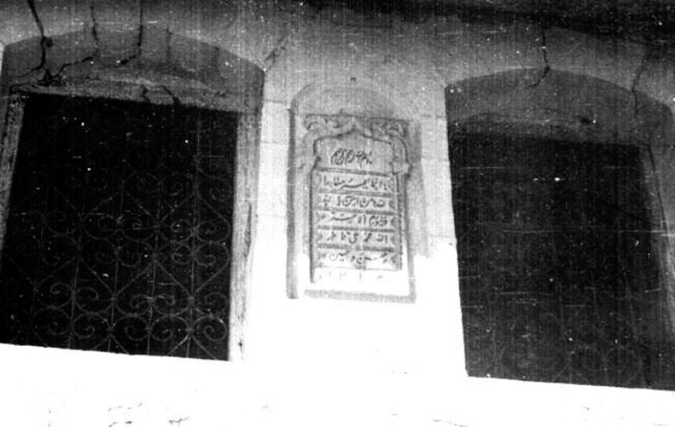 “Əldə edilmiş fotoşəkillərə əsasən, məscidin kitabəsinin mətni belə idi: Tərcümə: “Rəhman və Rəhim olan Allahın adı ilə. Allahın məscidlərini yalnız Allaha və qiyamət gününə iman gətirən şəxslər təmir edə bilər. Allah, Məhəmməd, Əli, Fatimə, Həsən və Hüseyn, 1312. Kitabədə “Tövbə” surəsinin 18-ci ayəsinin bir hissəsi, həmçinin Əhli-beyt üzvlərinin adları həkk olunmuşdu. Hicri-qəməri təqvimi ilə 1312-ci (miladi 1894/95-ci il) tarix məscidin tikilmə vaxtını dəqiqləşdirirdi.