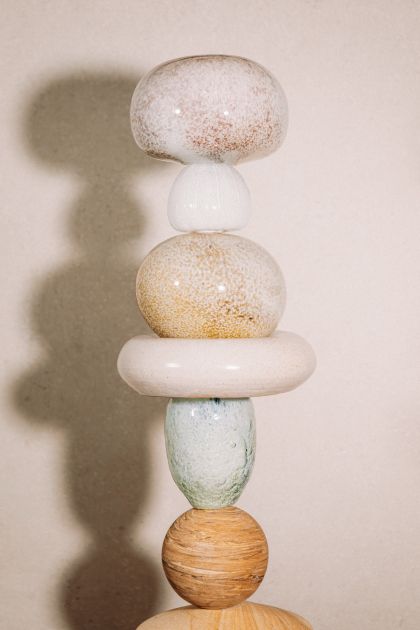 Rəssam öz ilhamını qədimdən məzar, anım, xatirə və oriyentir kimi istifadə olunan, şaquli yığılmış sütunvari daş obyektlərdən götürüb. O, bu formaları yenidən kəşf edərək, onları şəxsi xatirələrin və duyğuların sığınacağına çevirir. Zamanın ritmini əks etdirən bu lokal strukturlar, rəssama istiqamət verən bir növ yaddaş nişanələri kimi çıxış edir və onun simvolik, eyni zamanda, dərin şəxsi məkanını formalaşdırır. Həmin heykəltaraşlıq silsiləsi Aida Mahmudovanın Azərbaycandakı studiyası və İspaniyanın “Worn Studio” arasında sıx əməkdaşlıq nəticəsində ərsəyə gətirilib.