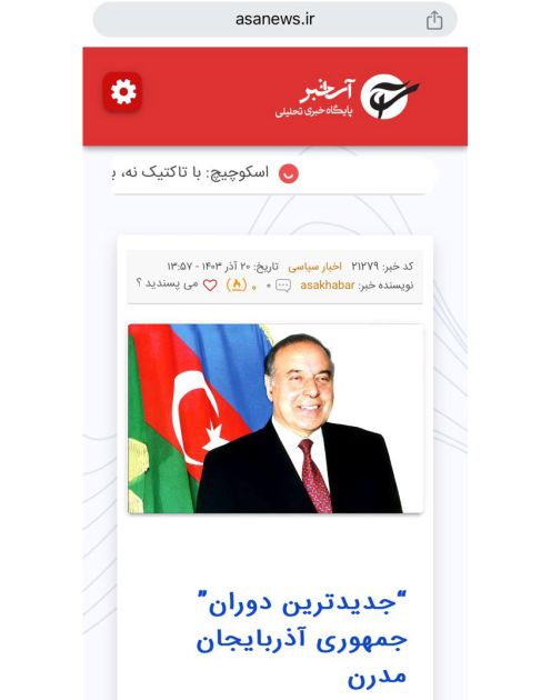 Təbrizin “Nasr” və “Asaxəbər” qəzetlərində Azərbaycan xalqının Ümummilli Lideri Heydər Əliyevin xatirəsinə həsr olunmuş geniş məqalə dərc olunub.