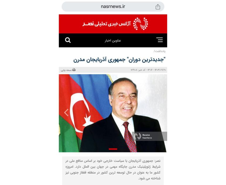 Yazıda bu siyasətin davamı olaraq Azərbaycan Prezidenti İlham Əliyevin səyləri ilə uğurla həyata keçirilən irimiqyaslı neft-qaz və infrastruktur layihələri, Avropa ölkələrinin enerji təhlükəsizliyinin təmin edilməsi istiqamətində imzalanan sazişlər haqqında ətraflı məlumat verilib. “Ulu Öndərin reallaşan arzusu Bakı-Tbilisi-Qars infrastrukturu kimi uzaq məsafələri yaxınlaşdırmağa xidmət etdi. Zaman göstərir ki, İpək Yolunun bərpası ideyasını irəli sürən Heydər Əliyev şəxsiyyətinin rolu təkcə regional yox, həm də qlobal əhəmiyyətə malikdir. Yeri gəlmişkən, Bakının 2024-cü il noyabrın 11-22-də ev sahibliyi etdiyi BMT-nin İqlim Dəyişmələri üzrə Çərçivə Konvensiyasının Tərəflər Konfransının 29-cu sessiyasında (COP29) İranın rəsmi nümayəndə heyətinin iştirakı Azərbaycan Respublikası ilə İran İslam Respublikası arasında mehriban qonşuluq münasibətlərinin təzahürünün daha bir təsdiqidir”, - deyə məqalədə vurğulanır.