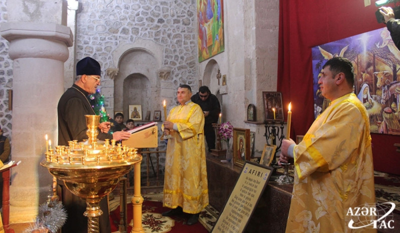 Dünyanın pravoslav xristianları tərəfindən qeyd edilən İsa Peyğəmbərin mövludu günü - Milad bayramı münasibətilə Qəbələ rayonunun Nic qəsəbəsində yerləşən “Cotari “alban kilsəsində bayram mərasimi keçirilib.