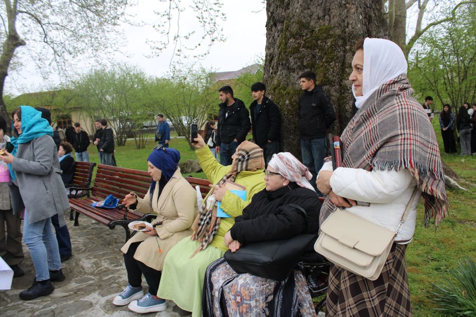 Bu arada dini ibadətlər icra edilib, kilsədə şamlar yandırılıb, dualar oxunub. Məbədin həyətində bayram süfrəsi açılıb.