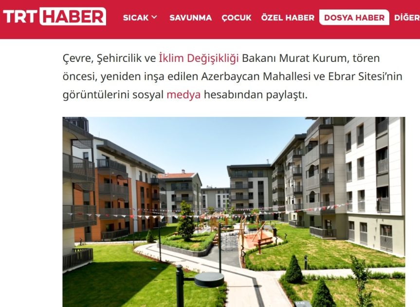 Reportajda Türkiyənin ətraf mühit, şəhərsalma və iqlim dəyişikliyi naziri Murat Kurumun Kahramanmaraşın “Azərbaycan” məhəlləsinə həsr etdiyi paylaşımı da yer alıb.
