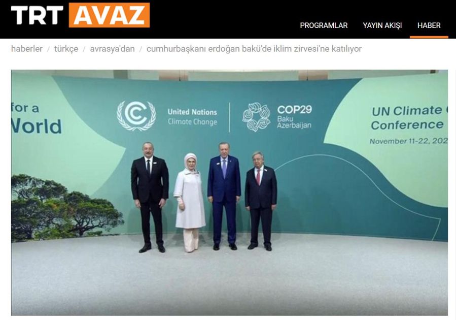 Qardaş ölkənin media strukturları Türkiyə Prezidenti Rəcəb Tayyib Ərdoğanın COP29 çərçivəsində proqramından danışıb, onun Bakıda keçiriləcək iqlim sammitində planlaşdırılan çıxışı barədə məlumat veriblər.