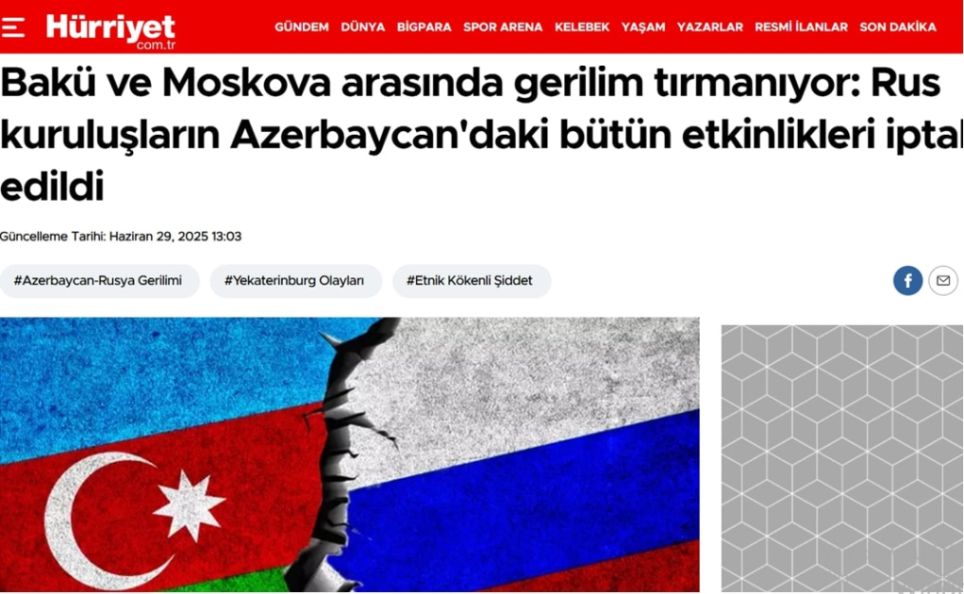 Türkiyə mediası Azərbaycanın Rusiyaya göndərdiyi etiraz notasından da söz açıb, Bakı ilə Moskva arasındakı gərginliyin səbəblərinə dair ekspert rəylərinə yer verib.