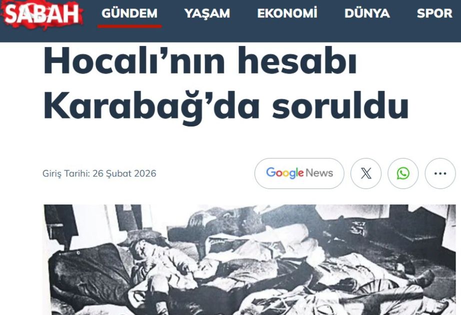 “Sabah” qəzeti: Xocalı ağrısı Türk dünyasının yaddaşında silinməz izlər buraxıb