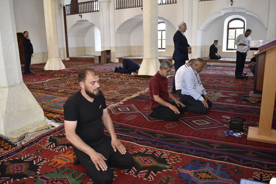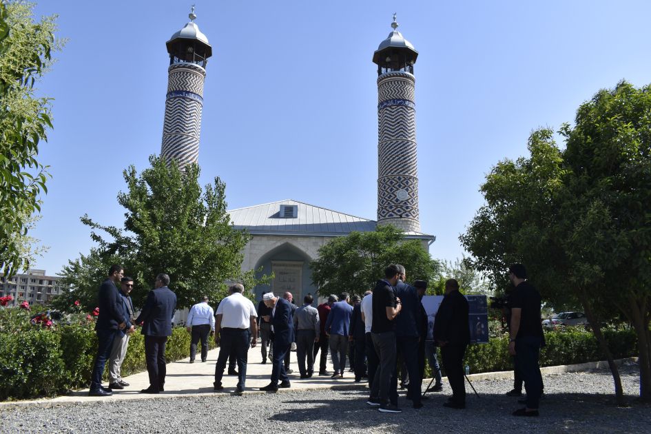 Din xadimləri sonra Ağdam şəhər Cümə məscidinə gəliblər. Onlara ermənilərin mədəni, tarixi, dini abidələri məhv etmələri və Ağdam işğaldan azad edildikdən sonra Azərbaycan dövləti tərəfindən həyata keçirilən bərpa-quruculuq işləri barədə məlumat verilib. Bildirilib ki, ermənilər işğal etdikləri digər rayonlarda olduğu kimi, Ağdamda da Azərbaycanın tarixi-mədəni irsinə qarşı görünməmiş vandalizm aktları həyata keçiriblər. Rayondakı abidələr, mədəniyyət ocaqları, məscidlər, qəbiristanlıqlar dağıdılıb, təhqir edilib. Erməni vandalizminə məruz qalan tarixi-dini abidələrdən biri də Ağdam şəhər Cümə məscididir. Ağdam Cümə məscidi 1868-1870-ci illərdə memar Kərbəlayi Səfixan Qarabaği tərəfindən tikilib. Ölkə əhəmiyyətli abidələr siyahısında olan bu məscid “Qarabağ məscid memarlığı” məktəbinə aiddir. Ermənilər hərbi məqsədlərə görə məscidi dağıtmayıb, onun minarələrindən koordinasiya üçün istifadə ediblər. Məscidin minarələri daxildən sökülüb, tavanı bir neçə yerdən uçurulub, dizayn və yazıları qəsdən yararsız, tanınmaz vəziyyətə salınıb. Erməni vandalları Ağdam Cümə məscidində mal-heyvan saxlamaqla azərbaycanlılara, müsəlman aləminə qarşı öz nifrətlərini nümayiş etdiriblər. Ağdam şəhəri işğaldan azad olunduqdan sonra Cümə məscidi bərpa olunaraq əvvəlki görkəminə qaytarılıb.