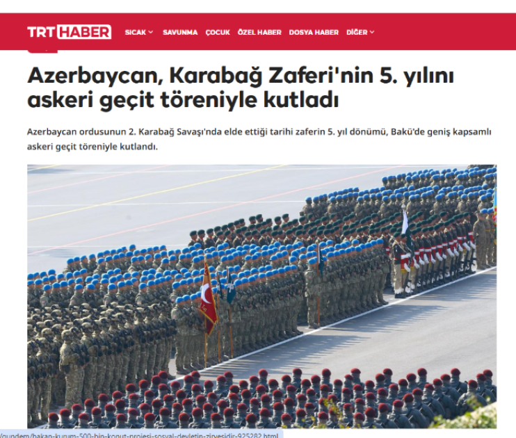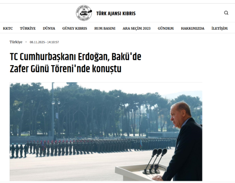 Türkiyənin və Şimali Kiprin aparıcı media qurumları Qələbənin beşinci ildönümünə həsr olunmuş Hərbi paradı geniş işıqlandırıblar