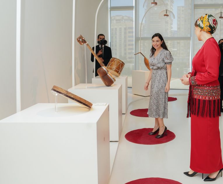 "Musiqi alətləri: Birlik və müxtəliflik" sərgisi ilə tanışlıqdan sonra Oquldjaxan Atabayeva "Kukla İncəsənətdə" və Azərbaycan xalçalarından ibarət "İlmələrin rəqsi" sərgisinə baxış keçirib.