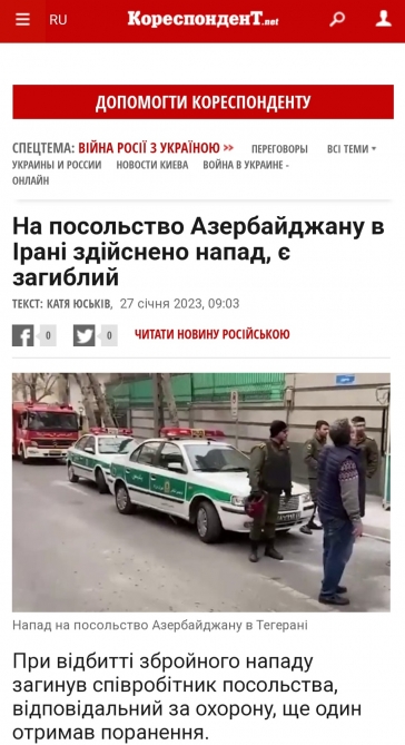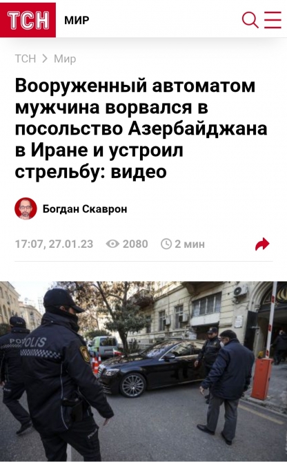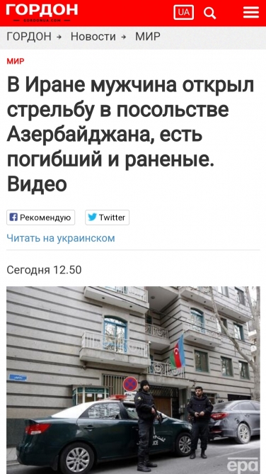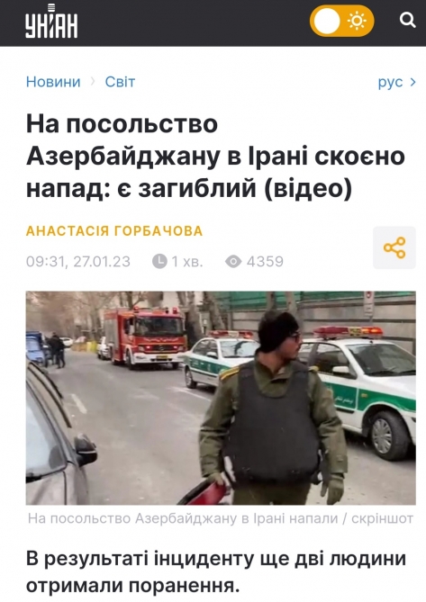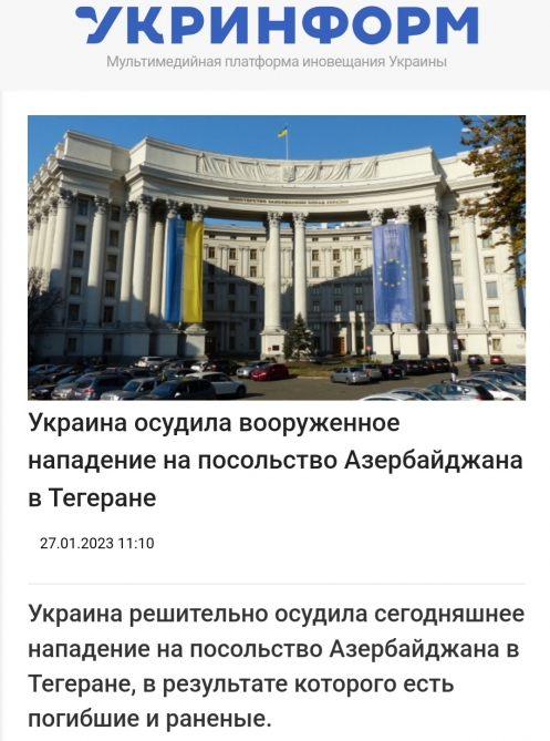 Ukraynanın nüfuzlu kütləvi informasiya vasitələri yanvarın 27-də Azərbaycanın İrandakı səfirliyinə edilən silahlı hücumla bağlı məlumatlara geniş yer ayırıb.