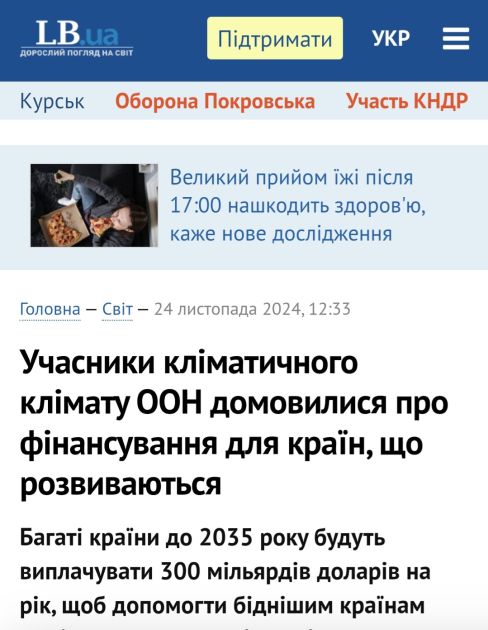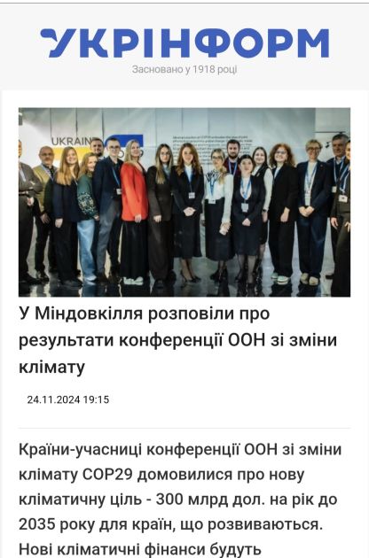 Ukraynanın nüfuzlu KİV-ləri Bakıda COP29-da əldə olunmuş razılaşmaya dair məqalələr dərc edib.