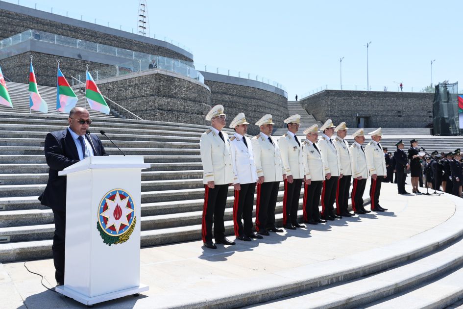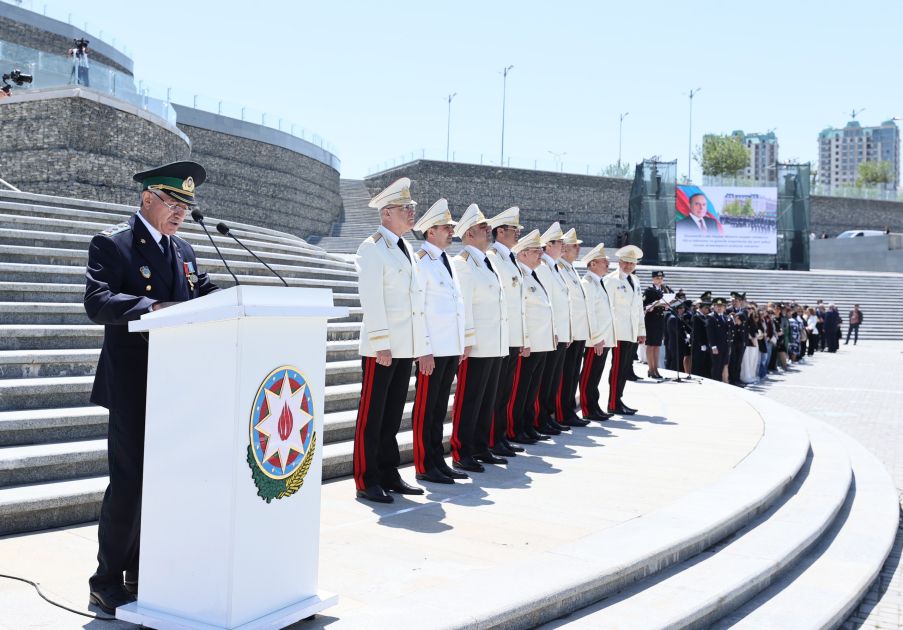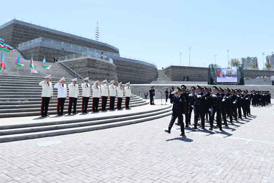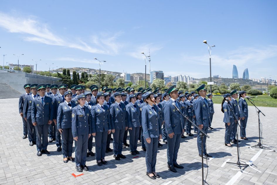 Ümummilli Liderin həyat və fəaliyyəti, eləcə də gömrük orqanlarına tövsiyələrini əks etdirən videoçarxların nümayişindən sonra xidmətə yeni qəbul edilən 113 əməkdaş gömrükçü andı içib və hərbi marşın sədaları altında təntənəli şəkildə tribuna önündən keçiblər.