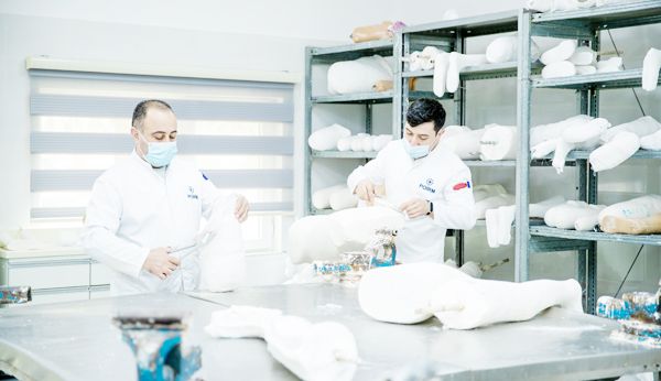 Texnik Kamran Məmmədli isə dedi ki, burada protezin ilkin mərhələsi hazırlanır. Qəliblərə tökülən gips quruyandan sonra boru vasitəsilə doldurulur. Daha sonra məngənəyə taxılaraq gipslərə protez hazırlanması üçün forma verilir və ilkin mərhələ üçün hazırlanır. Daha sonra isə laminasiya mərhələsi olur".
