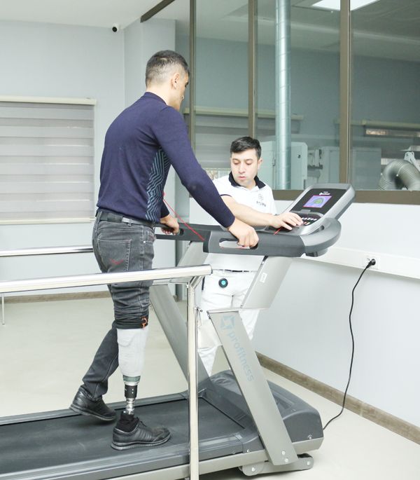 "Protezlərin sınaq otağı"nda isə pasiyentə protezlə davranış qaydalarını öyrədirlər. Onu ayağa qaldırmazdan öncə təlimatlar verirlər ki, birinci hansı ayağı atmaq lazımdır, necə davranmaq lazımdır və sair. Bundan sonra isə texniklərin köməyi ilə, necə deyərlər, pasiyent ilk addımlarını atmağa başlayır...