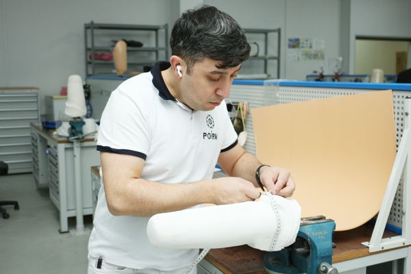 2018-ci ildən bu müəssisədə çalışan texnik Rəşad Cəfərov da Vətən müharibəsi iştirakçısı olub. Füzulidən Xocavəndə qədər döyüş yolu keçən Rəşad Cəfərov protezlərin hazırlanması sexində çalışır. Həyata keçirdiyi işin detalları barədə bizi məlumatlandıran texnik söylədi ki, mərkəzə müraciət edən pasiyent öncə həkim müayinəsindən keçir. Sonra isə ölçügötürmə otağına yaxınlaşır: "Burada ölçü götürülür və protez hazırlanır. Protez hazırlanandan sonra pasiyenti qəbul edirik və ona protezi geyindirib, istifadə qaydasını izah edirik".