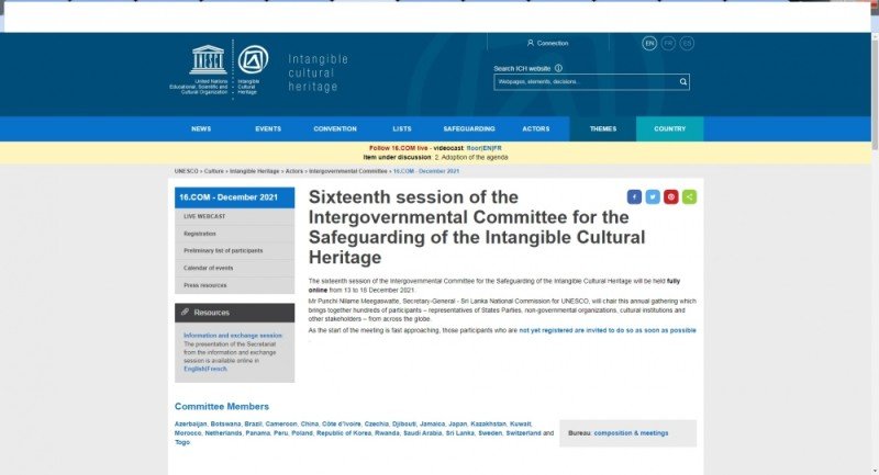 Komitənin 16-cı sessiyasına UNESCO üzrə Şri Lanka Milli Komissiyasının Baş Katibi Punçi Nilame Meqasvate sədrlik edir.
