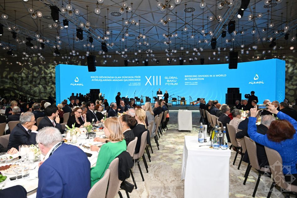 Martın 12-də Azərbaycan Respublikası Prezidentinin himayəsi altında və Nizami Gəncəvi Beynəlxalq Mərkəzinin təşkilatçılığı ilə işə başlayan XIII Qlobal Bakı Forumu çərçivəsində şam yeməyi təşkil olunub.
