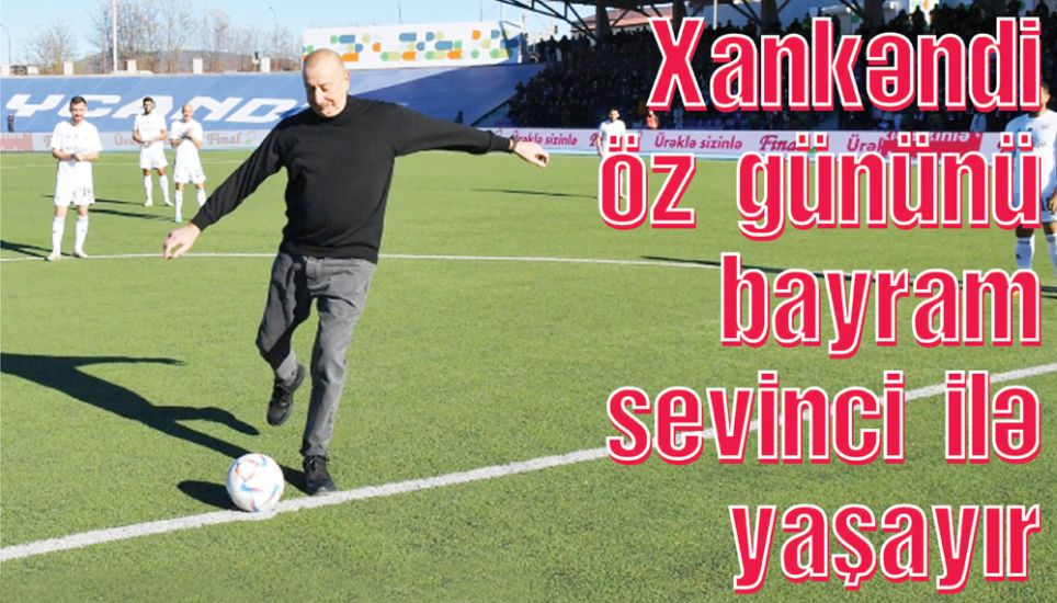 Vaxt keçdikcə ziyarətçilərin sayı da artır. Rastlaşdığımız insanların hamısının üz-gözündən sevinc yağır. Heyrət dolu baxışlardan hiss olunur ki, gələnlərin əksəriyyətinin Xankəndiyə ilk səfəridir. Bir az yüksəkliyə qalxıb Qarabağın ən böyük şəhərinin gözəlliyinə tamaşa edirik. Qarşımızda geniş bir mənzərə açılır. Dayandığımız yerdən xeyli aşağıda yaşıllığa bürünmüş stadionu görürük. Stadionun lap yuxarı hissəsinə böyük hərflərlə "Qarabağ Azərbaycandır!" sözləri yazılıb. Bəli, tarix də, zaman da bir daha dünyaya göstərdi ki, Qarabağ Azərbaycandır! Xatırlayırıq ki, Qarabağ erməni işğalçılarından azad olunandan sonra 21 dekabr 2023-cü ildə bu stadionda Ağdamın "Qarabağ" klubu ilə Bakının MOİK komandaları arasında futbol yarışı keçirildi. Topa da ilk zərbəni Azərbaycan Prezidenti İlham Əliyev vurdu.