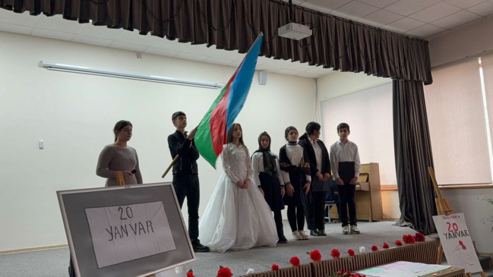AZƏRTAC-ın bölgə müxbiri xəbər verir ki, əvvəlcə Azərbaycanın Dövlət Himni səsləndirilib, 20 Yanvar faciəsi qurbanlarının xatirəsi bir dəqiqəlik sükutla yad edilib. Məktəbin direktoru Cəmilə Əhmədova 1990-cı il yanvarın 20-də törədilmiş faciədən, sovet qoşunlarının Azərbaycan xalqına, dinc əhaliyə qarşı törətdiyi cinayətlərdən, Vətənin azadlığı və ərazi bütövlüyü uğrunda canlarından keçən həmvətənlərimizin mübarizliyindən danışıb. Bildirib ki, 35 il keçsə də törədilən vəhşilik öz tarixi mahiyyətini itirmir. Bu gün hüzn günü yox, qürur günü, bir xalqın varlığını təsdiqləyən şərafət günüdür. Qan yaddaşımıza əbədi həkk olunan 20 yanvar tarixi, həm də Azərbaycanın sonrakı taleyində ciddi dönüş oldu. Bu faciədən sonra Azərbaycanda sovet imperiyası bütün dayaqlarını itirdi, ölkənin müstəqillik ideyası ümummilli amala çevrildi.