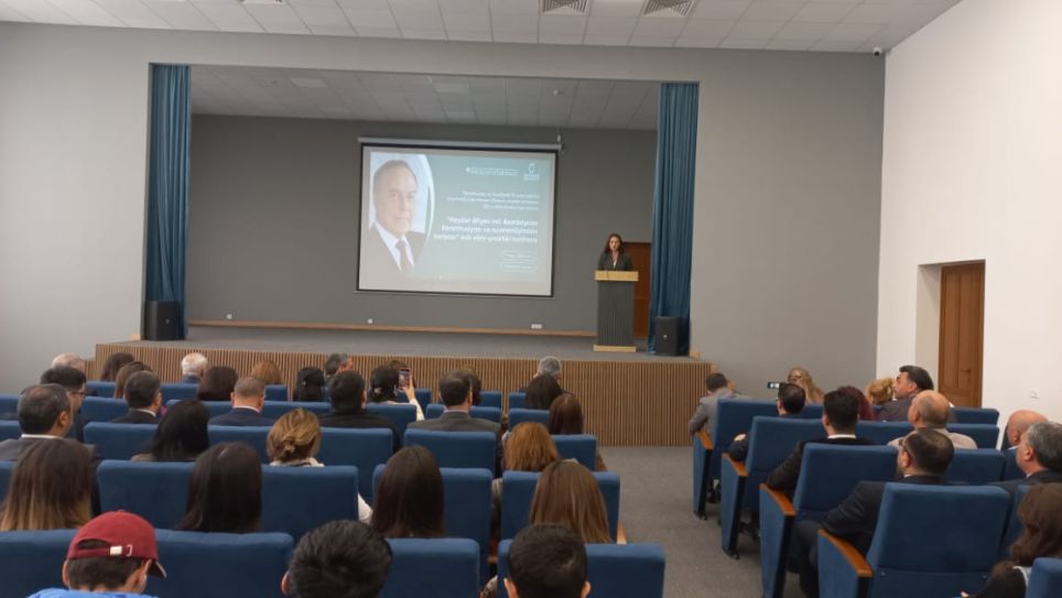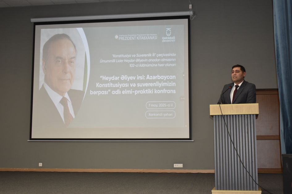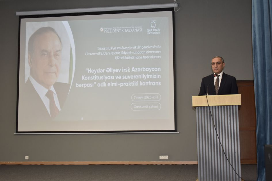 Xankəndi şəhərində Azərbaycan Respublikası Prezidentinin İşlər İdarəsinin Prezident Kitabxanası və Qarabağ Universitetinin birgə təşkilatçılığı ilə Ümummilli Lider Heydər Əliyevin anadan olmasının 102-ci ildönümünə həsr edilmiş “Heydər Əliyev irsi: Azərbaycan Konstitusiyası və suverenliyimizin bərpası” adlı elmi-praktiki konfrans keçirilib. Konfransda Prezident Kitabxanasının və Qarabağ Universitetinin əməkdaşları, tələbələr, media və ictimaiyyət nümayəndələri iştirak ediblər.