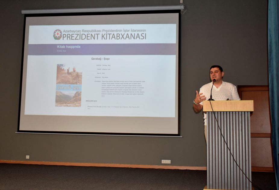 Sonra Prezident Kitabxanası adından Qarabağ Universitetinə kitabların hədiyyə edilməsi ilə bağlı akt təqdim olunub və kitabların sərgisi keçirilib.