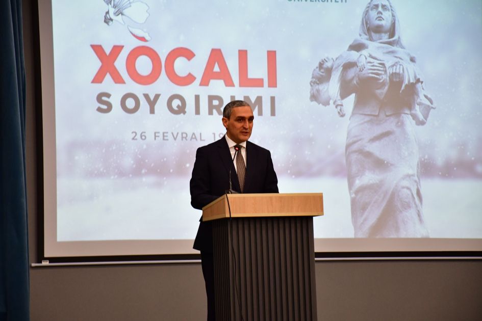 Qarabağ Universitetinin rektoru Şahin Bayramov Xocalı soyqırımının milli yaddaşımızda və dövlətçilik şüurumuzda mühüm yer tutan faciə olduğunu bildirib. Qeyd edib ki, Xankəndidə fəaliyyət göstərən Qarabağ Universitetində bu hadisənin anılması rəmzi məna daşıyır.