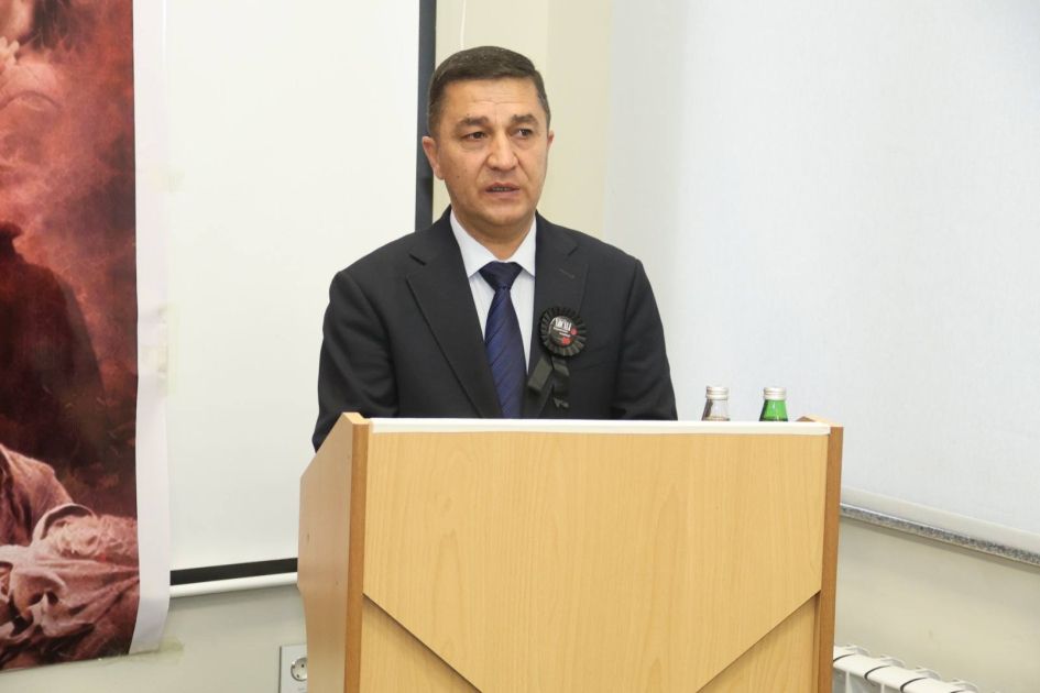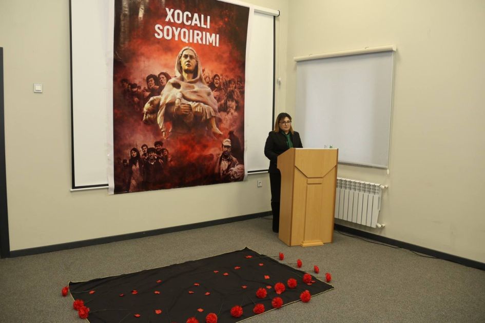 Qarabağ Regional Təhsil İdarəsinin müdiri Sənan Mənsimli çıxış edərək bildirib ki, 1992-ci il fevralın 25-dən 26-na keçən gecə Xocalıda dinc əhaliyə qarşı misli görünməmiş vəhşilik törədilib, bu faciə təkcə Azərbaycan xalqına deyil, bütün bəşəriyyətə qarşı yönəlmiş ağır cinayətdir.