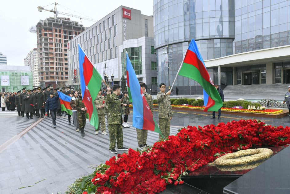 Xocalı soyqırımı qurbanlarının abidəsi ziyarət edilir